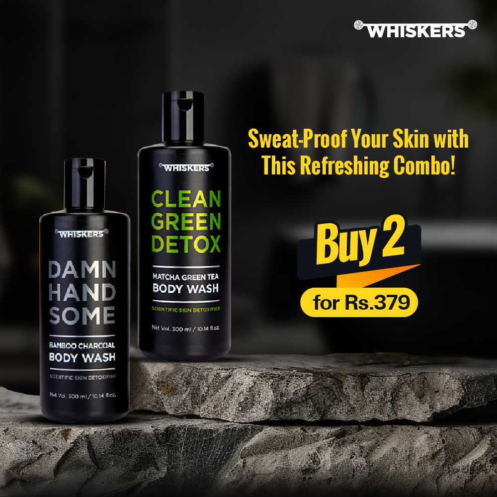 "Detox + Refresh = The Best Shower Routine! Get Whiskers Charcoal & Matcha Green Tea Body Wash Combo for the best of both worlds."